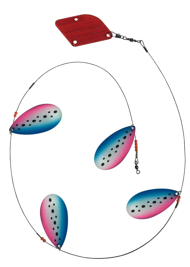 Tasmanian Devil Cow Bell er et markdrag som simulerer en fiskestim. Denne trolling riggen er klassisk utformet med blader, eller skjeer, som med spenstige farger og gode bevegelser gir blinkende effekt, og lurer fisken til hugg. Cow Bell er ca 90cm lang, og består av en wire med hovedskje, 4 spinnerskjeer, og i enden ferster du en krok eller sluk. Tradisjonelt sett brukes det gjerne krok med meitemark på. Men bruk gjerne en krok eller sluk som gjøres uimotståelig  for fisken med agn i form av Attraqua, meitemark, maggot eller lignende. Dorges ved sakte fart.