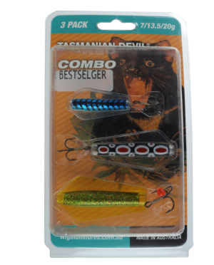 Tasmanian Devil Bestselger.Her har vi tatt den mest solgte sluken i 7g, 13,5g, samt 20g og samlet sammen i en pakke. (alle slukene i pakken er uten streng)Så om du skal på fjellet i mindre vann, på stranden etter sjøørreten (bleeega), til havs i båt, eller i elven etter laksen skal denne pakken kunne hjelpe deg med fangsten.Pakken inneholderPredator 7gBlack Toad 13,5Sunburst 20g
