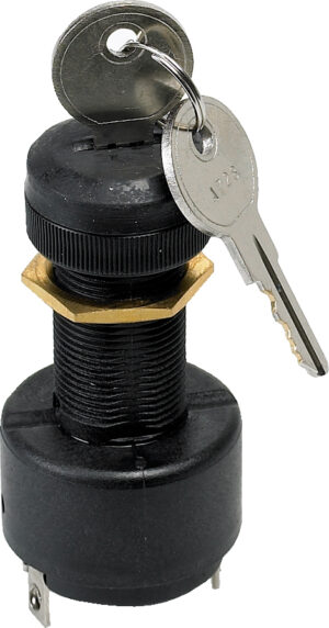 Robust tenningslås for 12V og 24V systemer. Gummibelagt topp for ekstra beskyttelse. 3 trinn for sikker og kontrollert tenning. Perfekt for båt og andre maritime applikasjoner.