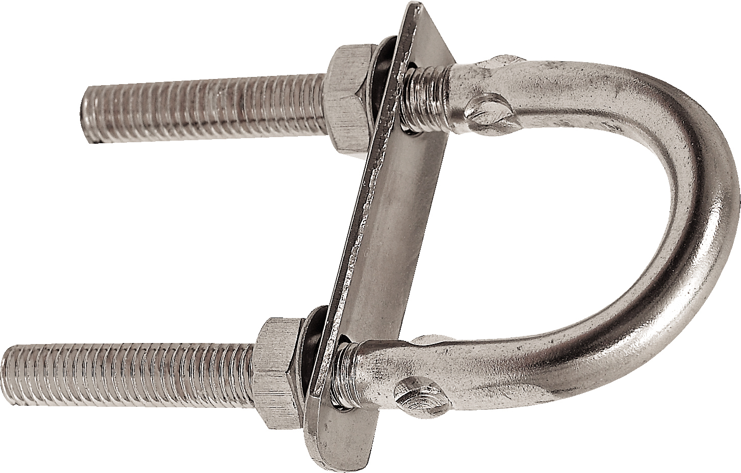 Robust U-bolt for baugmontering i syrefast stål 316. Leveres med bøyd plate for økt styrke. Perfekt for maritimt bruk og sikring av utstyr på båten.