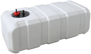 Sikker og pålitelig 100-liters vanntank fra CAN for fast montering i båten. Komplett med inspeksjonsluke og klargjort for tankgiver. Mål: 910 x 410 x 300+30 mm.