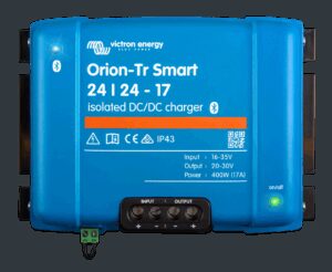 Orion Tr-Smart-lader kan brukes i 12V- eller 24V-systemer og er egnet for både blysyre og litiumbatterier. Modeller er tilgjengelige opptil 400W og ubegrensede flere enheter kan kobles parallelt for å øke utgangseffekten.