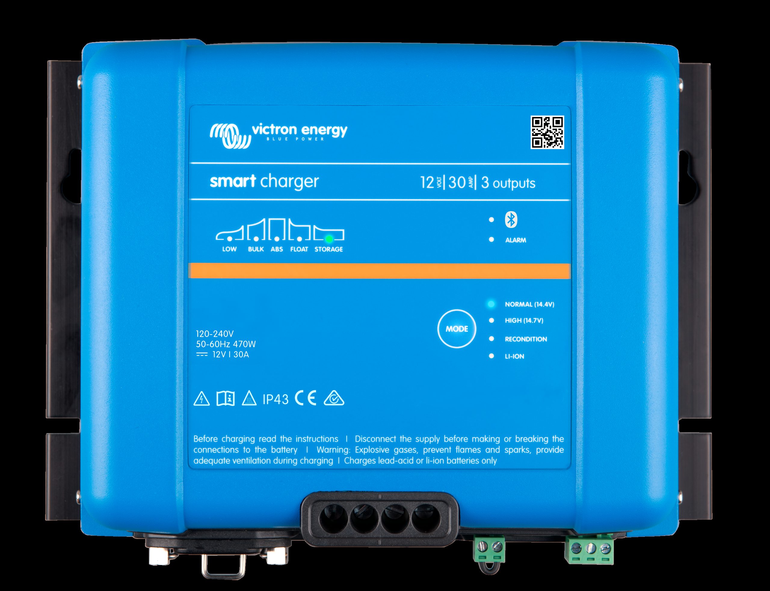 Kraftig og smart 12V batterilader med 30A ladestrøm fordelt på 3 kanaler. Bluetooth-tilkobling for enkel overvåking og konfigurering. Perfekt for båt!