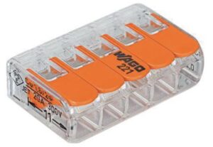 Sikker og brukervennlig Wago 5-pol rekkeklemme med fjær for elektriske koblinger. Aksepterer ledere fra 0.2 mm² til 4 mm². Perfekt for bobil, solcellepakker og maritime installasjoner.