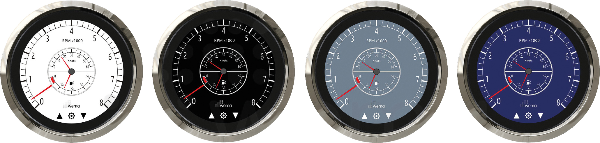Wema Multiinstrument 3″ gir deg sanntids motordata på en fargerik touch screen. Fleksibel tilkobling via NMEA 2000 eller analoge signaler. Velg mellom flere displayvisninger og bakgrunnsfarger.