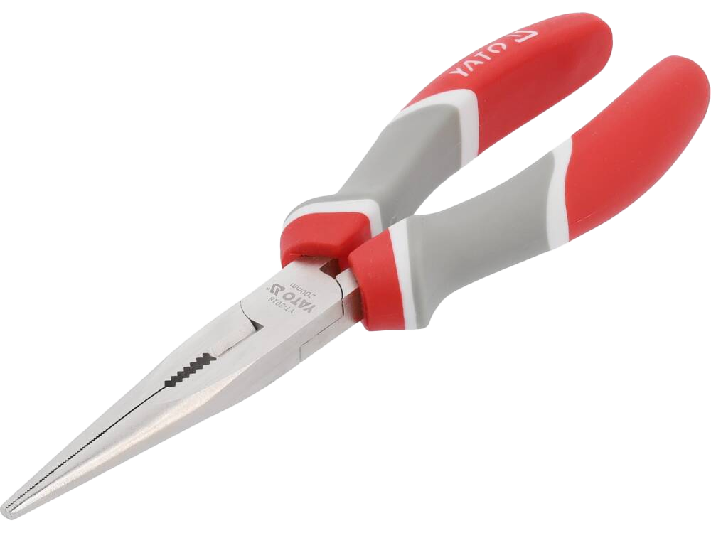Nebbtang i høy kvalitet fra anerkjente Yato. Lengde: 200mm, med avbiter og riflet kjeft. Laget i forniklet og polert karbonstål, med behagelig håndtak i trekomponent PP/TRP plast. DIN 5746