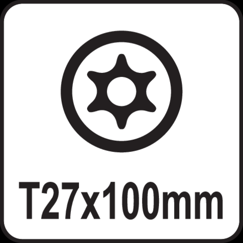 TORX skrutrekker av høy kvalitet fra YATO, med sylindrisk skaft laget av S2 stål som er herdet til ca. 58 HRC. Torx Security-spissen har et innvendig hull for bruk på skruer med sikkerhetssplint. skaftets overflate er sateng-behandletarbeidsspiss herdet og sandblåst (dette øker stabiliteten til spissen)håndtaket er laget av nøye utvalgte materialer med ulike hardheter for best mulig arbeidskomfort og stabilitet.  Størrelse: T27Arbeidslengde: 100mm