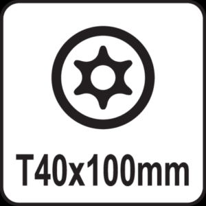 TORX skrutrekker av høy kvalitet fra YATO, med sylindrisk skaft laget av S2 stål som er herdet til ca. 58 HRC. Torx Security-spissen har et innvendig hull for bruk på skruer med sikkerhetssplint. skaftets overflate er sateng-behandletarbeidsspiss herdet og sandblåst (dette øker stabiliteten til spissen)håndtaket er laget av nøye utvalgte materialer med ulike hardheter for best mulig arbeidskomfort og stabilitet. Størrelse: T40Arbeidslengde: 100mm